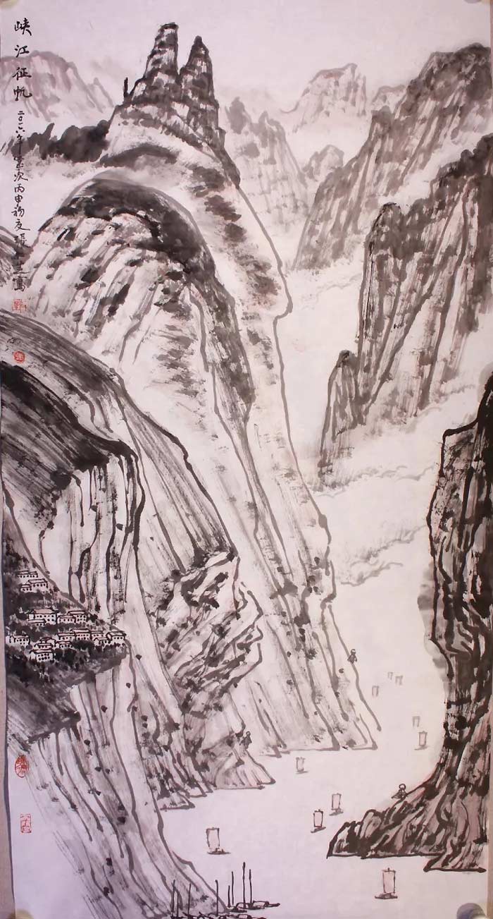峡江征帆 136x68cm