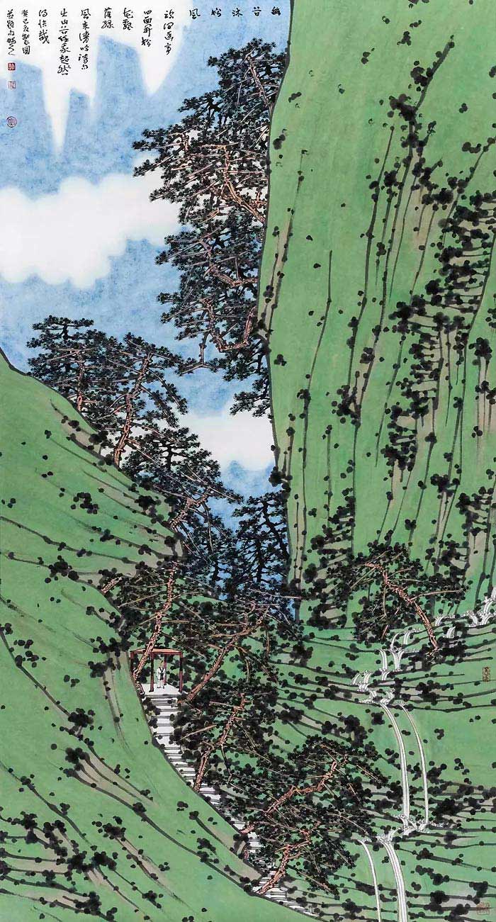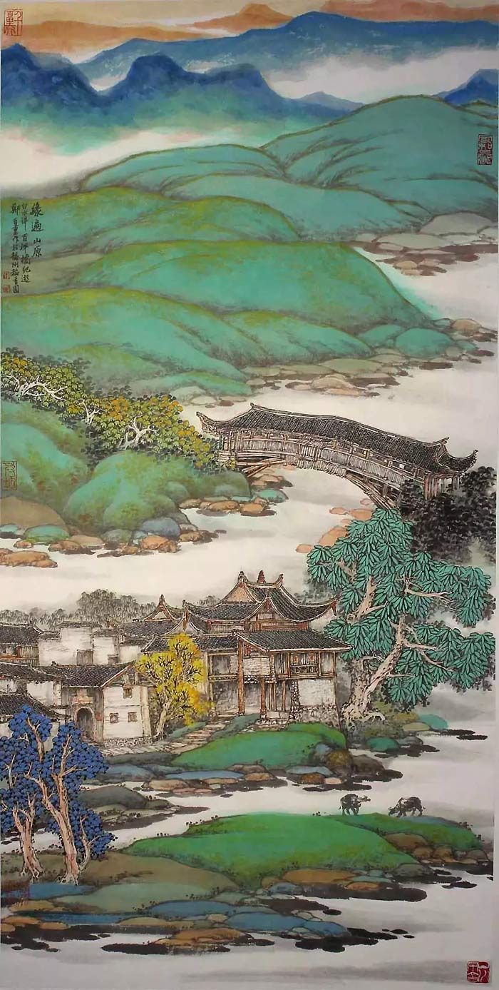 第二届“绿水青山——青绿山水画名家学术邀请展”参展作品所描绘的万里河山,是这些艺术家眼中生机勃勃的祖国大地,所孕育的芸芸众生激发着炎黄子孙対这片土地的无限热爱之情。新时代盛世江山的宏伟蓝图在他们的笔下熠熠生辉,凝聚着无穷生命力和创造力,激励着华夏儿女在实现中国梦的进程中砥砺前行。