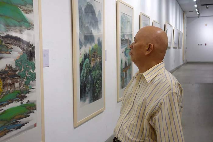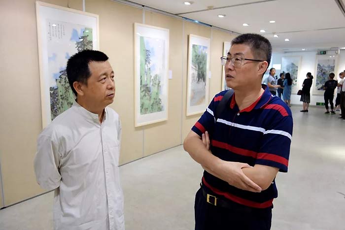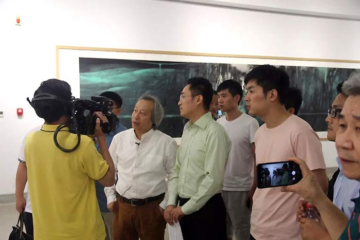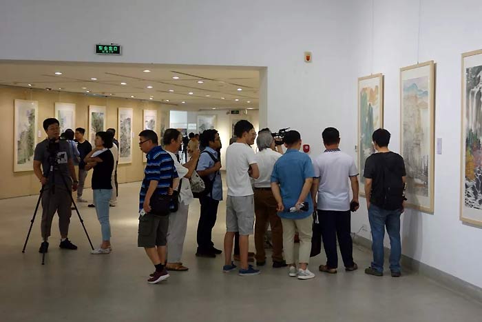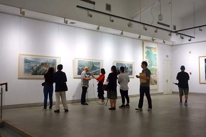 第二届“绿水青山——青绿山水画名家学术邀请展”,展出卢禹舜、苗重安、郑百重、范扬、林容生、许俊、牛克诚、盛寿永、李岗九位卓有成就的青绿山水画领军人物绘画作品近百幅。在开幕式当天,这些艺术家专程接受了书画频道的专访,向广大电视观众介绍了自己的参展作品和创造心得。