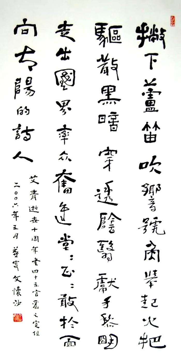 文怀沙(1910年1月15日—2018年6月23日),生于北京,祖籍湖南。斋名燕堂,号燕叟。笔名王耳,司空无忌。著名国学大师、红学家、书画家、金石家、中医学家、吟咏大师、新中国楚辞研究第一人。曾任燕堂诗社社长、上海大学文学院名誉院长、西北大学“唐文化国际研究中心”名誉主席、中国诗书画研究院名誉院长、黾学院名誉院长等。文怀沙20世纪40年代就在文化界有一定名望。
