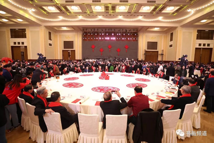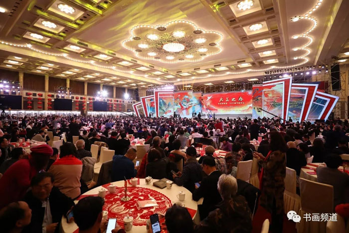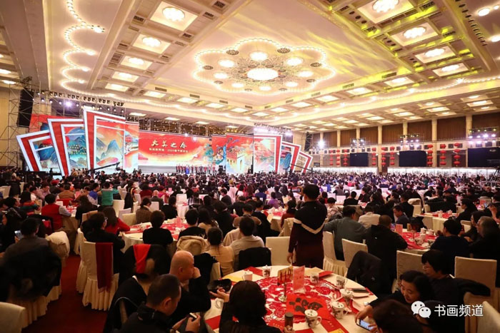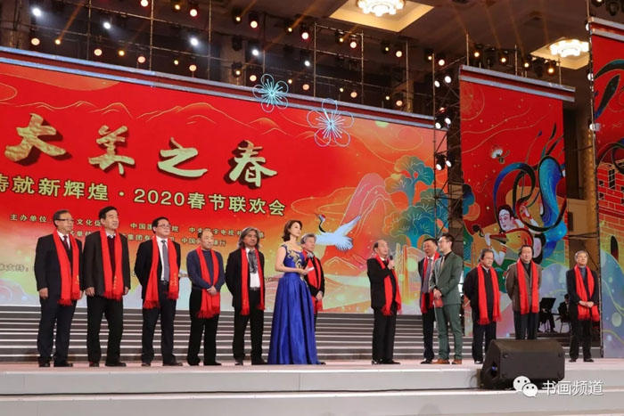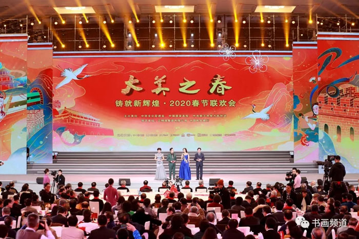 1月12日下午,人民大会堂大宴会厅内灯光璀璨、笑语欢歌、春意盎然。由中华文化促进会、中国国家画院、书画频道主办,五粮液集团有限公司、中国民生银行冠名的“铸就新辉煌——2020‘大美之春’春节联欢会”在这里隆重举行。本届“大美之春”春节联欢会紧扣时代脉搏,主题鲜明、场面宏大、充满激情,集中展现了文化艺术领域精英不断开拓进取、砥砺前行、铸就新辉煌的精神风貌,是举国上下书画艺术家们欢聚一堂、喜迎新春大联欢的一次盛会。
