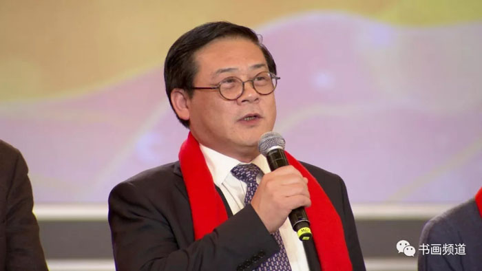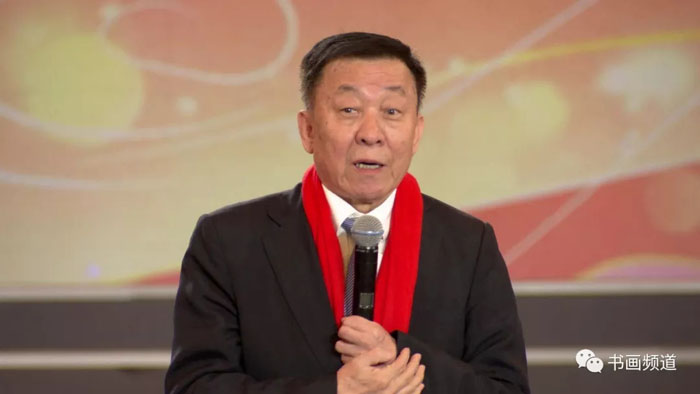 高占祥、王石、冯远、范迪安、苏士澍、卢禹舜、杨晓阳、吴为山、徐里、陈洪武、王平代表国内各美术机构向全国书画艺术家及电视观众送上新春祝福。