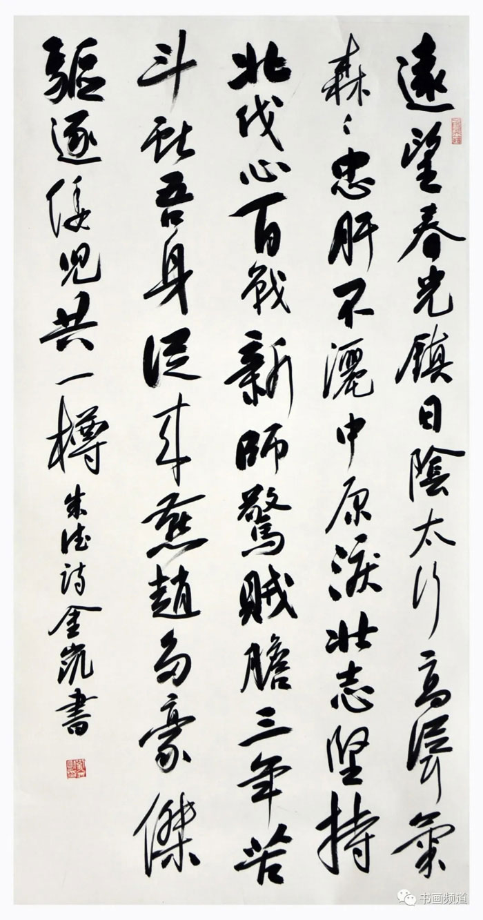 释文:远望春光镇日阴,太行高耸气森森。忠肝不洒中原泪,壮志坚持北伐心。百战新师惊贼胆,三年苦斗献吾身。从来燕赵多豪杰,驱逐倭儿共一樽