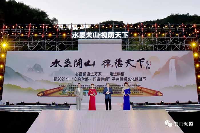 水墨关山,槐荫天下;崆峒巍峨,泾水长流。5月18日至20日,“水墨关山•槐荫天下”书画频道进万家——走进平凉崇信,暨2021年“交响丝路•问道崆峒”平凉崆峒文化旅游节盛大启幕,书画频道携手三十余位来自全国的书画艺术和表演艺术名家走进平凉崇信,通过大型文艺晚会、书画名家精品展、名家笔会、文化大讲堂、采风写生等系列主题文化活动,助力崇信当地文化和旅游品牌建设,助推崇信当地苹果种植和红牛养殖等特色产业发展,在举国上下共同庆祝建党100周年之际,为广大崇信人民送来了精彩纷呈的饕餮文化盛宴。