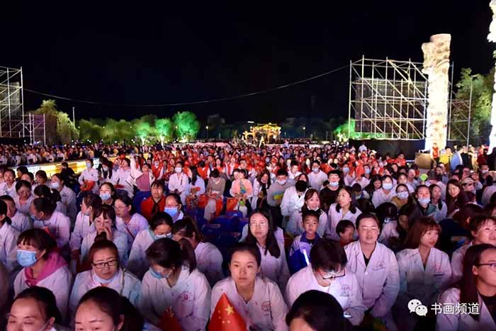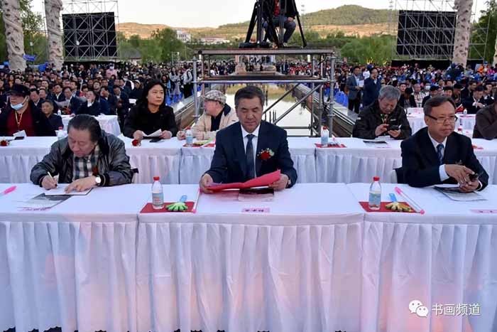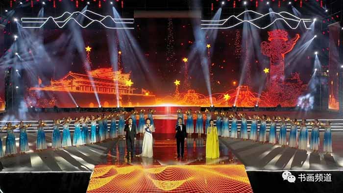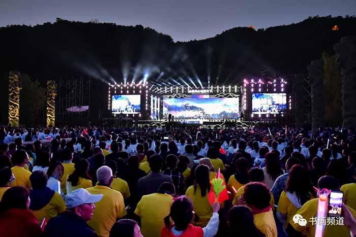 中国美术家协会副主席杨晓阳,中国国家画院原副院长曾来德,中国书法家协会顾问翟万益,中国画学会理事、北京观复美术院院长裘缉木,中国书法家协会第五、六、七届理事、楷书专业委员会副主任杨明臣,中国书法家协会理事、中央国家机关书画协会副主席张志和,甘肃省文联副主席、甘肃省美术家协会主席马刚,中国美术家协会理事、安徽省美术家协会主席杨国新,中国美术家协会理事、山西省美术家协会主席王学辉,中国美术家协会理事、青海省美术家协会名誉主席王利峰,中国美术家协会理事、贵州省美术家协会主席谌宏微,中国美术家协会理事、河北省美术家协会主席祁海峰,中国美术家协会会员、清华大学美术学院教授戴顺智,中国国家画院书法篆刻院执行院长、中国国家画院研究员李晓军,广西书法家协会主席郑军健,中国书法家协会理事、甘肃省书法家协会主席安文丽,中国美术家协会理事张清智,中国国家画院专业画家胡宝利,中国美术家协会理事、中国国家博物馆书画研究创作中心负责人石峰,中国山水画研究院院长陈克永,中国美术家协会理事、中国山水画研究院副院长段铁,厦门市美术家协会副主席、国家一级美术师赵星,中国书法家协会理事、广东省书法家协会副主席纪光明,中国书法家协会理事、草书委员会委员王厚祥,中国书法家协会楷书专业委员会委员李明,中国美术家协会会员、北京美术家协会会副秘书长兼展览部主任张亮京,山东省美术家协会顾问、山东省中国画学会副会长于新生,中国美术家协会会员、河山画会会员包信源,中国美术家协会中国重彩画研究会理事盛寿永,中国美术家协会会员、中国工笔画学会常务理事、副秘书长孙恺,中央文史馆书画院研究员、中国美术家协会会员杨若云;中共甘肃省委宣传部二级巡视员封奎海,省文联副主席王正茂;甘肃省政协副主席、平凉市委书记郭承录,市委副书记、市长王旭,市人大常委会主任马琨,市政协主席王大睿,中国围棋协会副主席兼秘书长王谊,书画频道董事局主席王平;市直属部门,各县(市、区)党政、文旅局负责人,以及现场观众万余人,共同见证了本场晚会的盛况。同时,本场晚会还通过书画频道官网、官方微信公众号、新华网、新甘肃、咪咕视频、爱奇艺、今日头条、西瓜视频、抖音、平凉日报、平凉市广播电视台、平凉文旅等线上平台进行现场直播,在线收看人数达百万人。