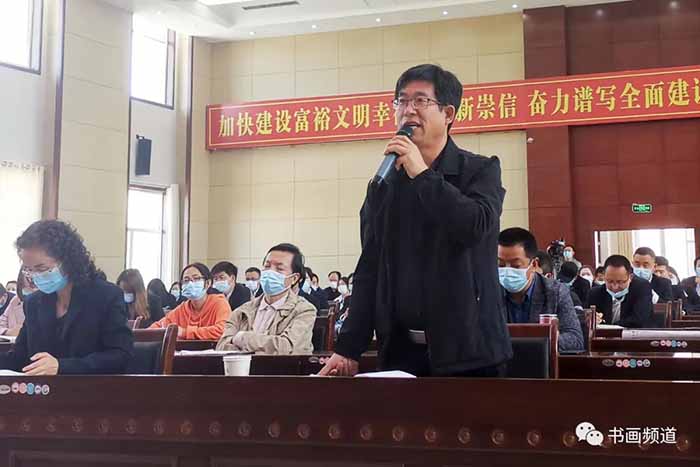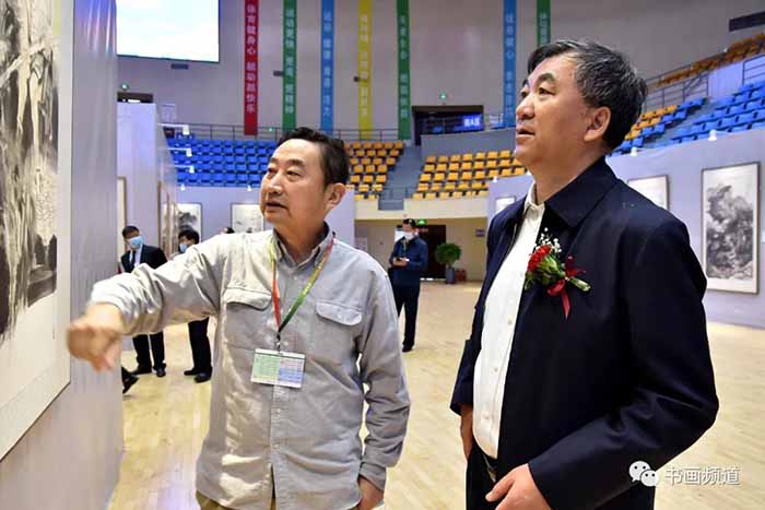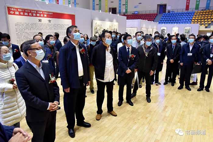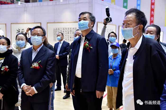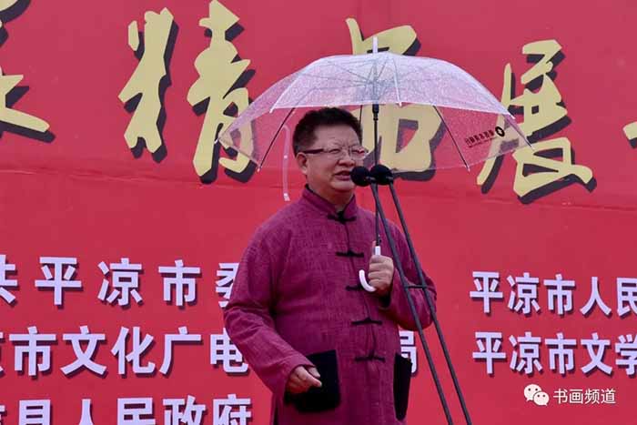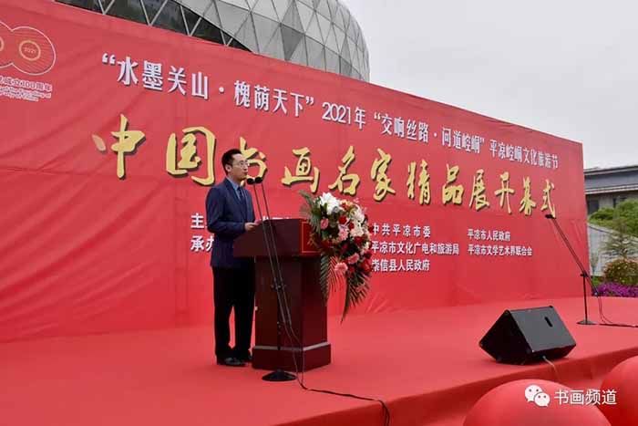 作为书画频道进万家——走进平凉崇信系列文化活动之一,5月19日,中国书画名家精品展在崇信体育馆隆重开幕。仪式上,崇信县委书记张拴会,中国国家画院原副院长曾来德,甘肃省美术家协会主席马刚先后致辞,平凉市政协主席王大睿宣布展览开幕。