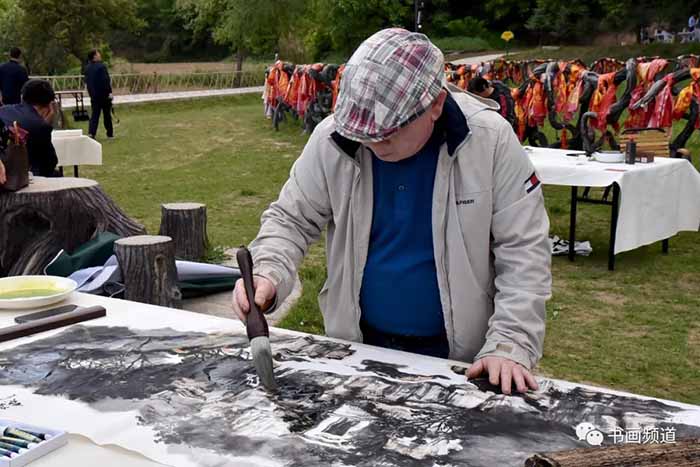 裘缉木、杨国新、戴顺智、李晓军、于新生现场创作