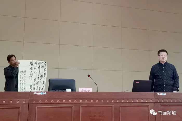 为进一步丰富崇信当地文化事业发展,书画频道特邀中国国家画院原副院长曾来德与河北省美术家协会主席祁海峰举办“书画文化大讲堂”,为广大崇信书画艺术爱好者献上了题为《汉字文化与汉字书法》和《千秋伟业百年风华—中国美术经典传承》的精彩专题讲座,并通过现场示范点评。
