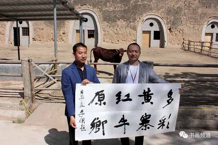 在黄寨镇甘庄村,这里的窑洞生态养牛基地也办得有声有色,艺术家们用画笔描绘这里的田园风光,并将作品赠予当地百姓,让广大村民感受到书画艺术的无穷魅力。