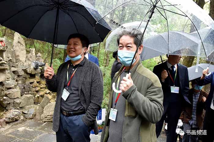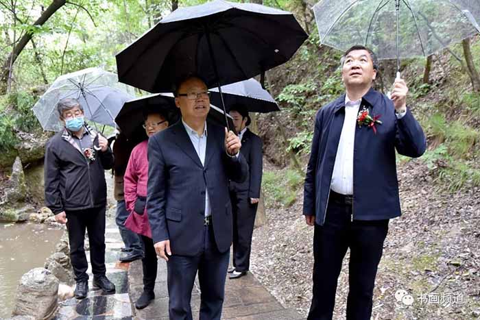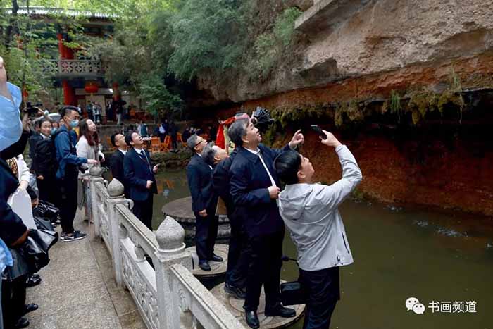 为了更好地了解当地风土人情,艺术家们还走进位于芮河北岸的崇信龙泉寺采风写生,用手中的毛笔抒写心中的龙泉圣境,感受大美崇信的自然魅力和悠久的历史底蕴。在采风活动进行期间,艺术家及书画频道还向景区赠送了书画艺术作品。