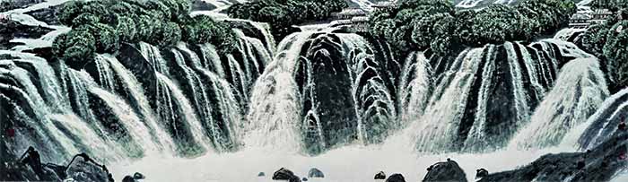 林间飞瀑源远流长 98.5×340cm (2000年)
