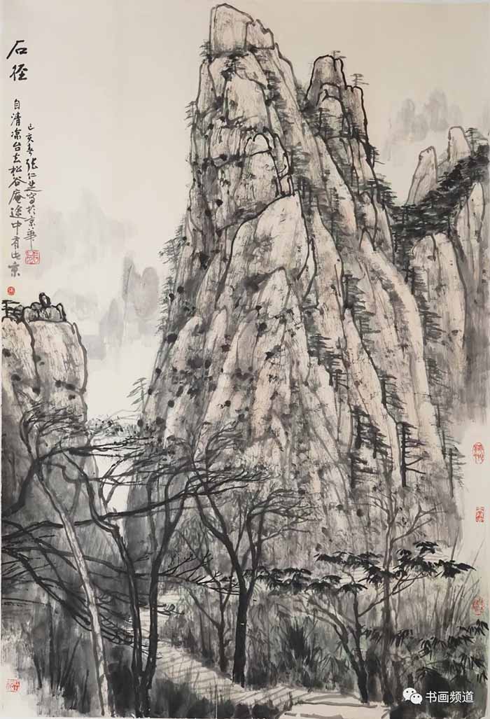当年李可染等老一辈艺术家,走的是深入名山大川写生后进行创作之路,用具有鲜明时代特色的作品,回答了山水画能不能反映现实生活的时代命题。张仁芝先生认定了艺术为人民,笔墨当随时代,始终坚持深入生活、深入自然山川,以置身其中的感悟来创作山水画作品,用传统的笔墨为不同地域、不同形态的自然山川留下多姿多彩的作品,从而去激励、强化人们对祖国母亲的深深爱恋。