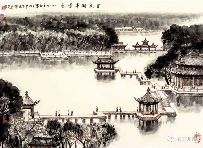 百泉湖亭景色 49.5×58.5cm (2017年)