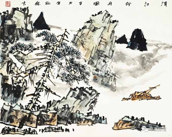 H03893-谢麟-清江行舟图-40cm×50cm