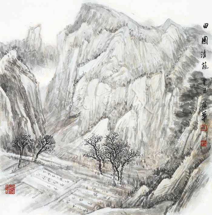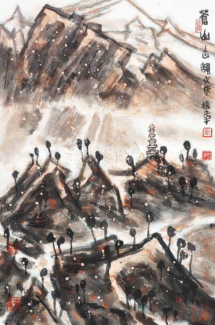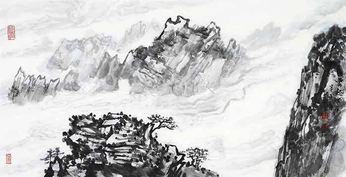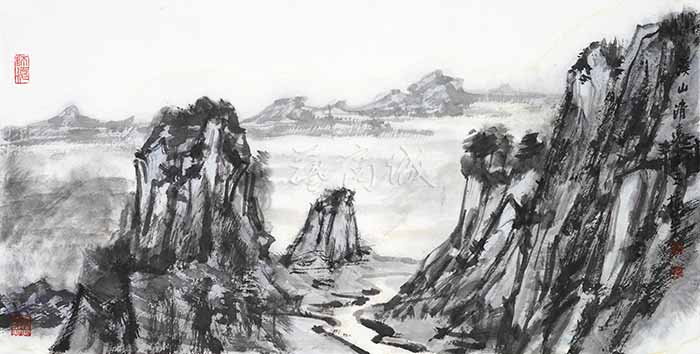 梁振华的水墨山水呈现着一片苍郁与厚重。我们可以将其作品整体划分为北方山水和南方山水两类。可贵的是,他在处理这两种不同风格的题材时,丝毫没有显得局促和矛盾,而是驾驭得游刃有余又不失自我。