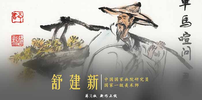 正如原中国国家画院院长、中国美术家协会副主席刘勃舒先生评论文章中提到:“舒建新通过在写意人物画层面的突破,完美地解决了可与大山大水气质相溶、气势贯通、和谐一体的笔墨难题!真是天时地利人和,外加他‘十年磨一剑’修来的造化!仅凭这一学术亮点,我就肯定,他已是当今优秀艺术家之一。”