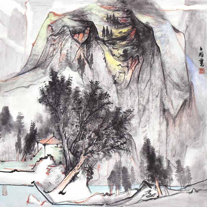 H03967-左文辉-斜阳雨外山-68cm×68cm