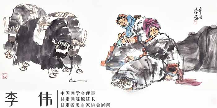 “面对丰富的生活景象,每个人的理解和喜爱都会不同。在题材的选择上,我主要侧重于西部地域特色的挖掘,表现我比较熟悉的高原藏民生活。”李伟坚持从甘肃的自然风貌和民俗民情中提练绘画语言,敏锐地捕捉感动心灵的审美素材。其笔下的甘南藏区风情画,浓墨巨笔,大块的黑墨中透着空灵,冷默静滞中夹藏着神秘,传神写心,风貌独具。作品笔墨浑厚,构图奇崛,充满悟性和灵性,体现出其高超的山水写生水准和与众不同的艺术观念。其笔下的人物形象表情无丝毫矫揉造作,自然而不拘束,有着永恒而且优美的审美特点,能够让观者增加对其生活状态、生活经历的联想,同时也使画面内涵变得丰富起来。