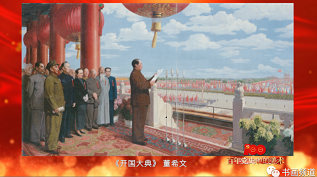 董希文于1953年创作的《开国大典》,无疑是中华人民共和国成立的艺术见证,这幅作品经典再现了毛泽东在1949年10月1日,于天安门城楼上庄重宣读《中华人民共和国中央人民政府公告》的光辉历史时刻,从构图到设色、从人物到场面,它的气派足以反映泱泱大国的精神风貌。而王式廓于1957年创作了这幅《井冈山会师》,画作采用了低视平线的构图方法,突出了两位领袖的伟岸身材,并将毛泽东同志与朱德同志即将握手瞬间的空间场景展示出来,凸显出一种夺人心魄的魅力。