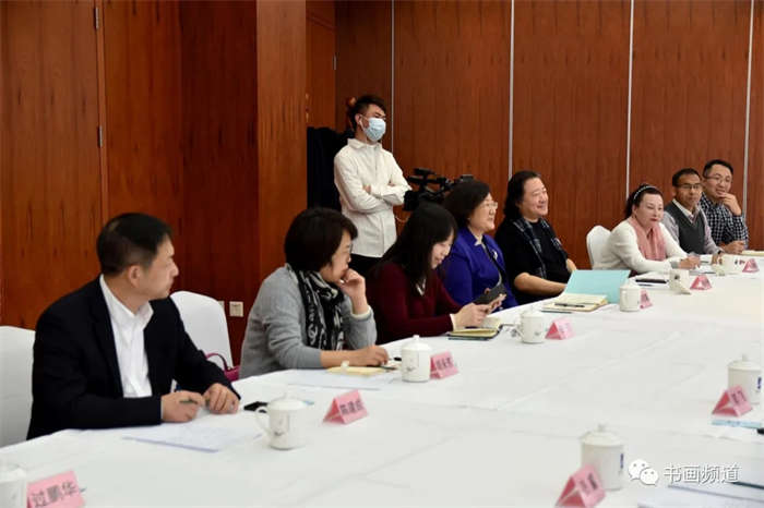 为深入了解书画艺术的传承和传播情況,促进书画艺术国内国外传播,全国人大常委会委员、环资委副主任委员、致公党中央副主席吕彩霞,致公党中央宣传部副部长张刃,致公党中央文化委副主任、中国致公画院院长纪连彬,以及致公党相关负责人与书画频道各部门领导举行了“推进中国书画艺术传统文化传播”调研座谈会。