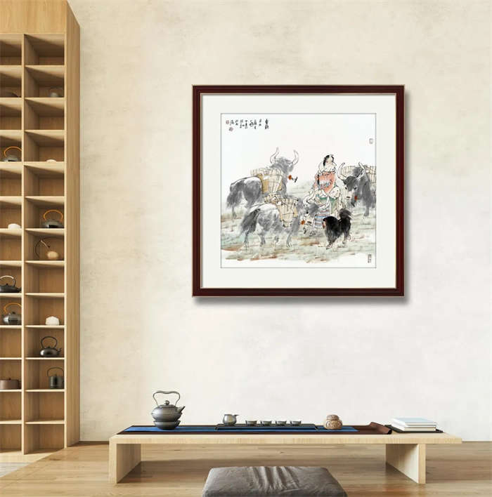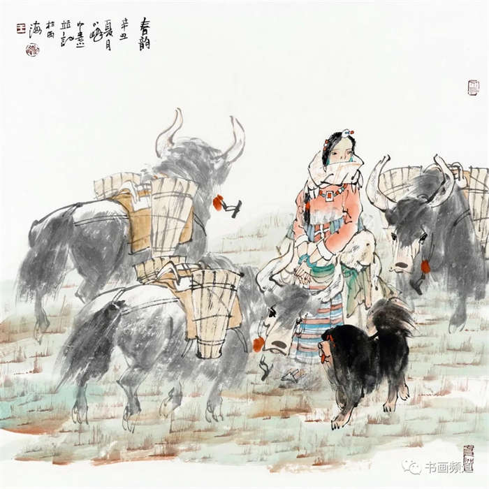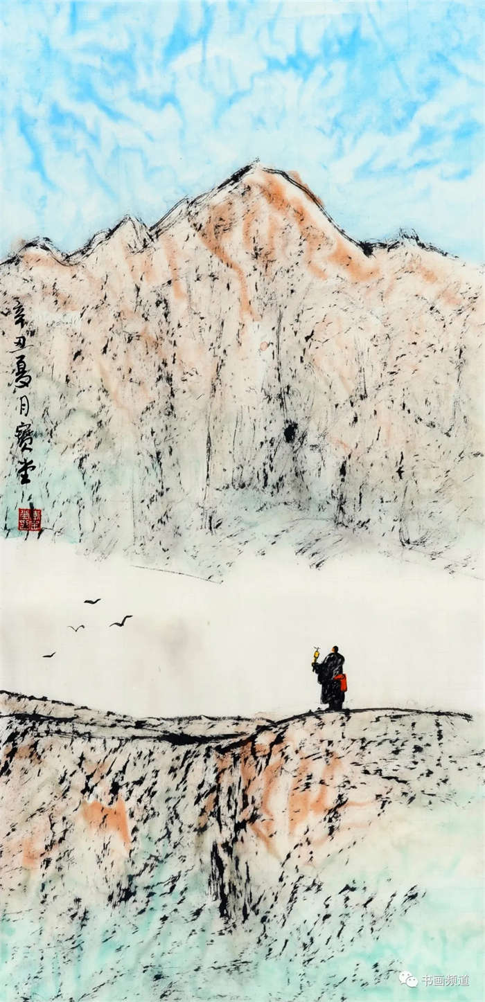 王利峰的画面多描绘青藏高原的雪域风情,反映了藏族放牧生活的场景,从作品中可以感受到王利峰对西部山水一览无余的情怀,笔墨眷恋而洒脱,感受到自然平和、和谐圣洁的高原之美。
