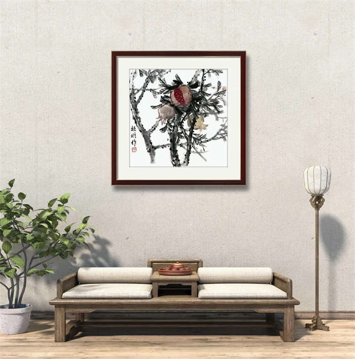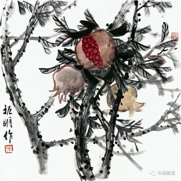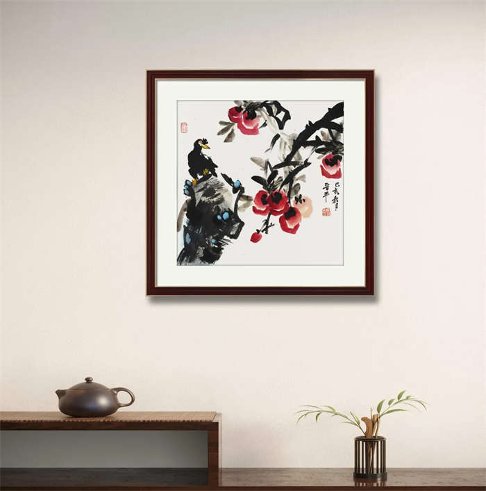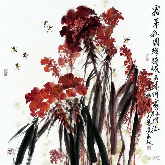 梁时民的花鸟作品多取全景构图,突破性地将山水中的“皴”、“擦”运用到花鸟之中,具有天然的山水气,开阔苍茫,意境深远。通过丰富的泼墨泼彩表现画面,以及快速的运笔速度,突显笔墨层次和厚重的质感,呈现出一种斑驳,幻化而且更加丰富的绘画效果。气势雄强厚重,又有传统文人水墨之意境,形成强有力的视觉感。