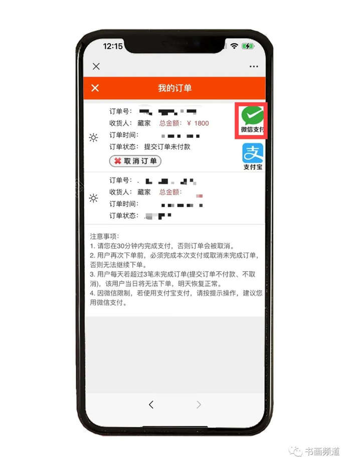 7.购买信息无误后点击“确认”下单,进入“我的订单”界面,参考注意事项,通过界面提示使用“微信”或“支付宝”完成支付。购买成功之后可在“我的订单”查看订单进度。