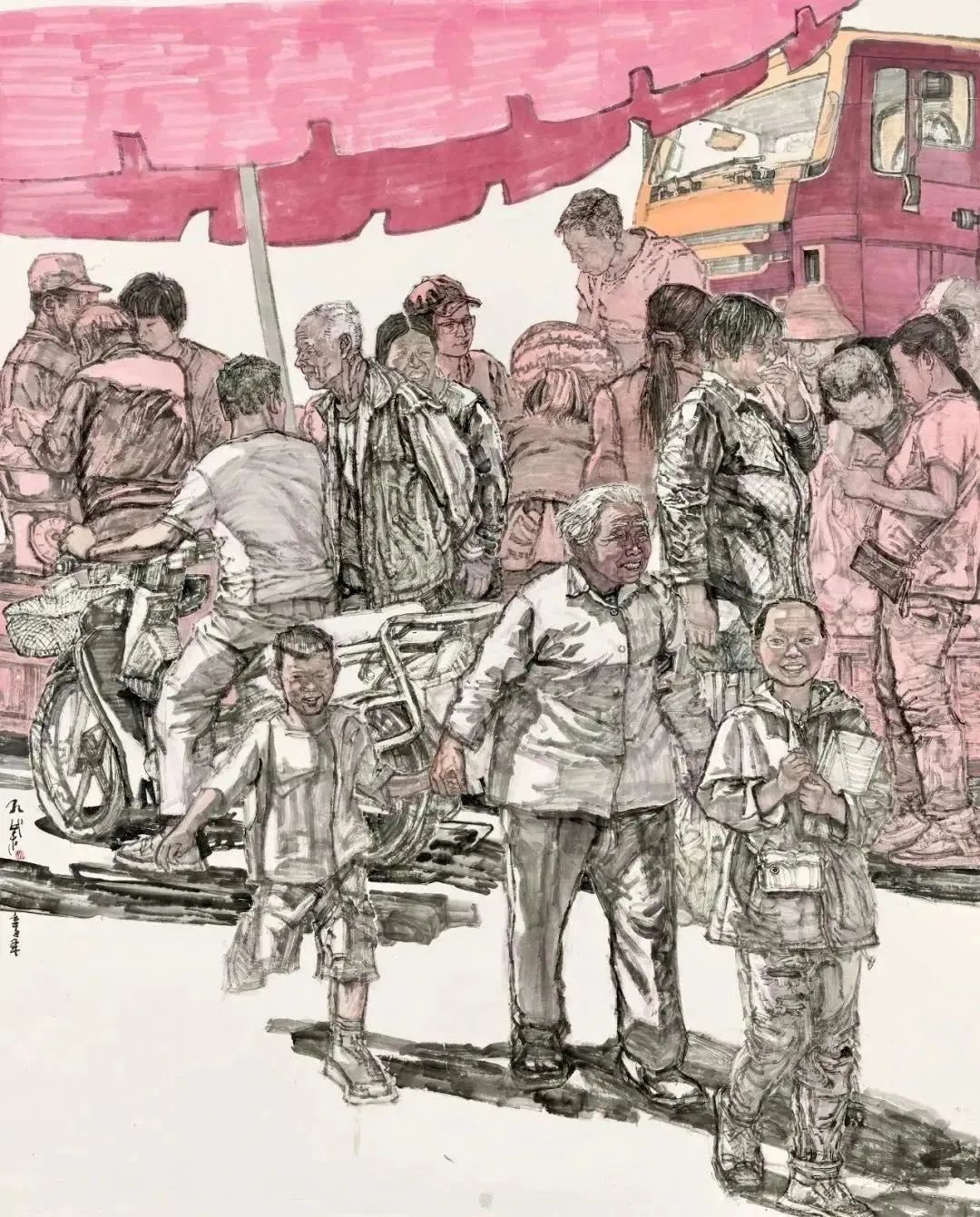 孔紫 《阳光下》200cmx245cm 国画 2021年
