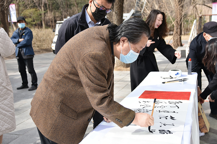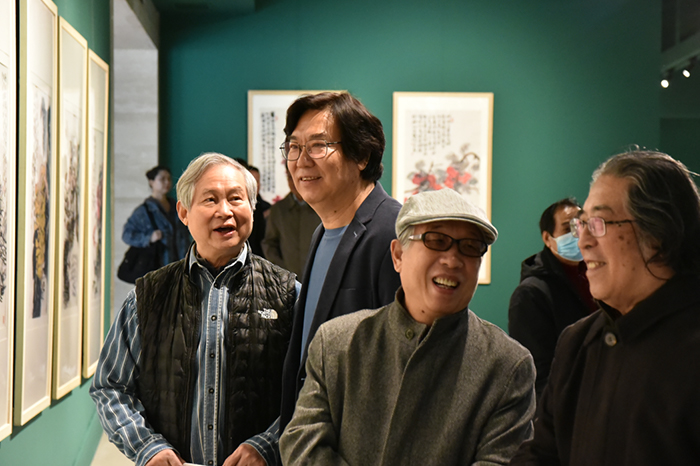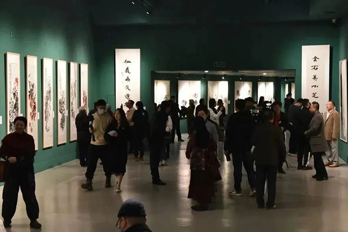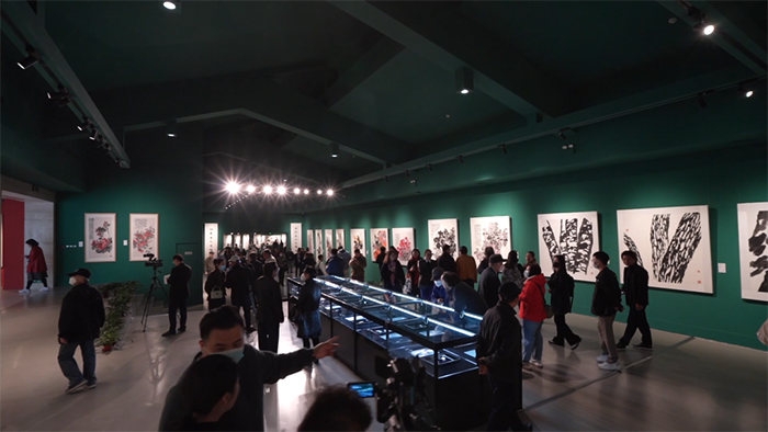 本次展览作为李晓军创作生涯的阶段性总结,以丰富的种类、卓然的作品,展示了一位优秀艺术家不竭的创造创新能力和深厚的学养。在书画作品中,李晓军以书入画,人品和画品相结合,大气磅礴又生动肆意,传承“缶翁之豪迈,白石之精妙,潘天寿之强悍,李苦禅之纯厚”,在心迹同一、心手双畅的中国画传统精神的指导下,追寻独属于自己的物我两忘之境。同时,汉字设计、华文艺饰、首饰系列作品的呈现让我们看到了一位艺术家广博的胸襟,和艺术创作的融会贯通。
