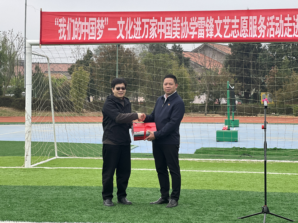 活动现场,王平代表中国美协向普者黑中心学校捐赠了美术书籍,中国文联美术艺术中心活动管理处处长董竟成代表中国美协接受文山州文联回赠锦旗。中国文联美术艺术中心活动管理处副处长安明主持启动仪式。