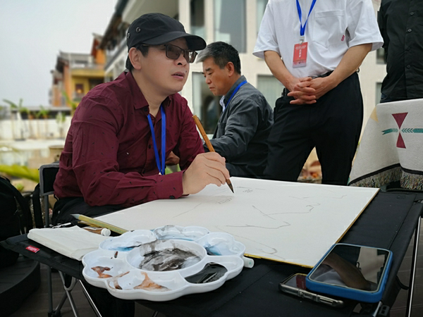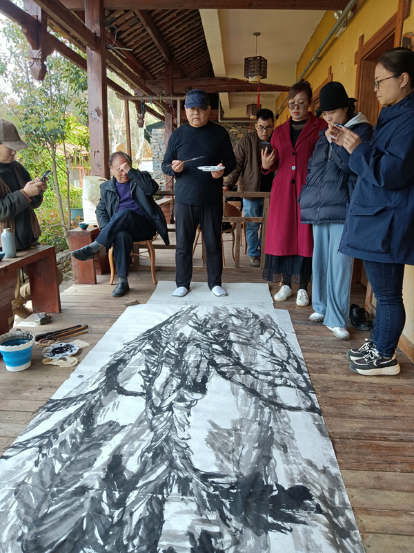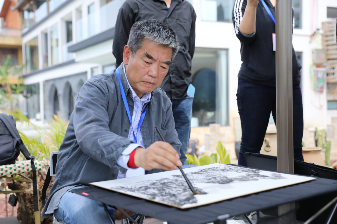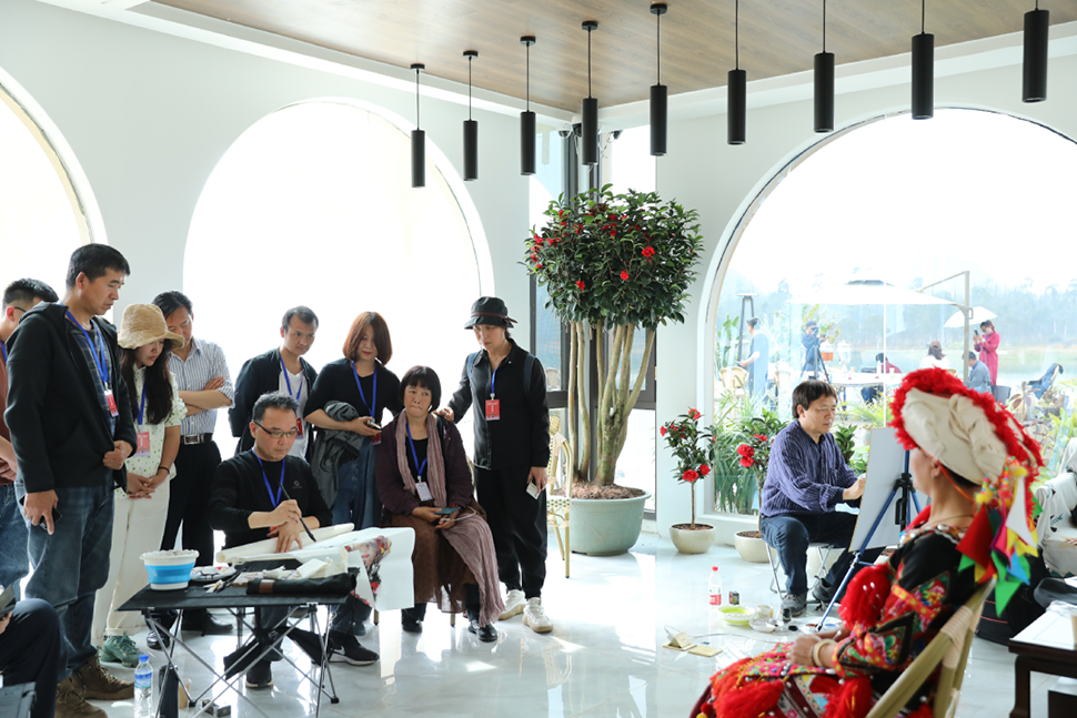 活动期间,部分艺术家不辞辛劳,白天写生创作,夜晚在驻地参与义务笔会,并创作两幅美术作品赠送给云南。