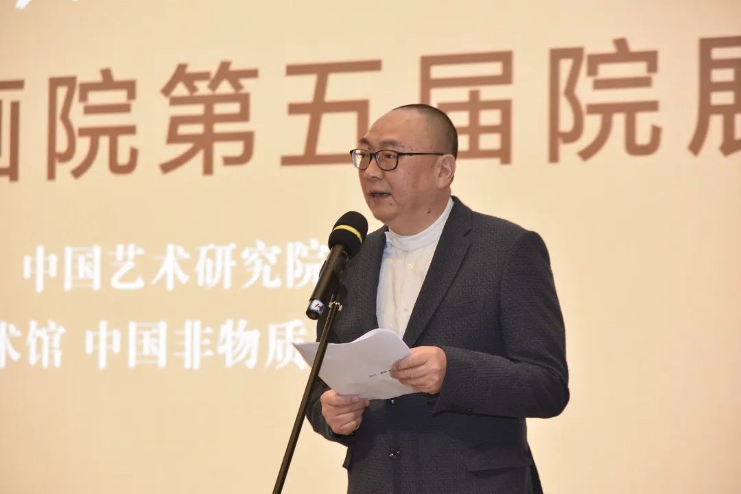 中国艺术研究院国画院副院长李传真代读中国艺术研究院国画院名誉院长田黎明致辞、中国美术家协会名誉主席冯远贺信