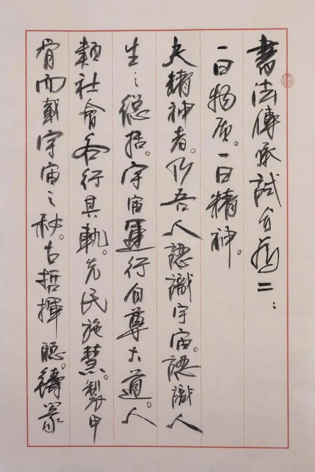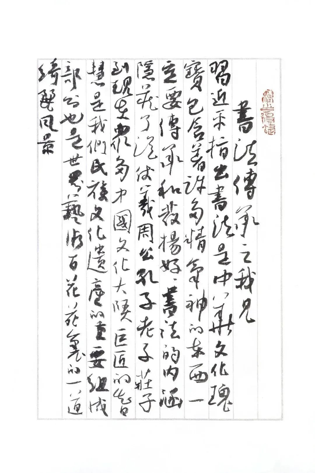 习近平指出:“书法是中华文化瑰宝,包含着许多精气神的东西,一定要传承和发扬好。”书法的内涵,隐藏了从伏羲、周公、孔子、老子、庄子到现在众多中国文化大贤巨匠的智慧,是我们民族文化遗产的重要组成部分,也是世界艺术百花苑里的一道绮丽风景。