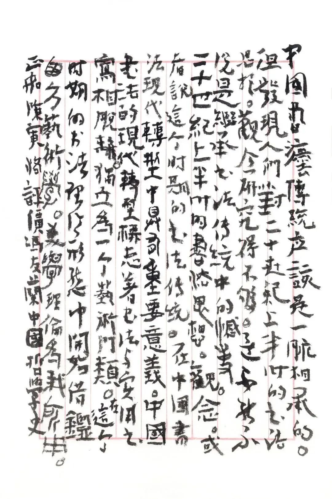 二十世纪上半叶的书法思想、观念,或者说这个时期的书法传统,在中国书法现代转型中具有重要意义。中国书法的现代转型标志着书法与实用书写相脱离。独立为一个艺术门类,在这个时期的书法理念形态中,开始借鉴西方艺术学、美学理论为我所用。