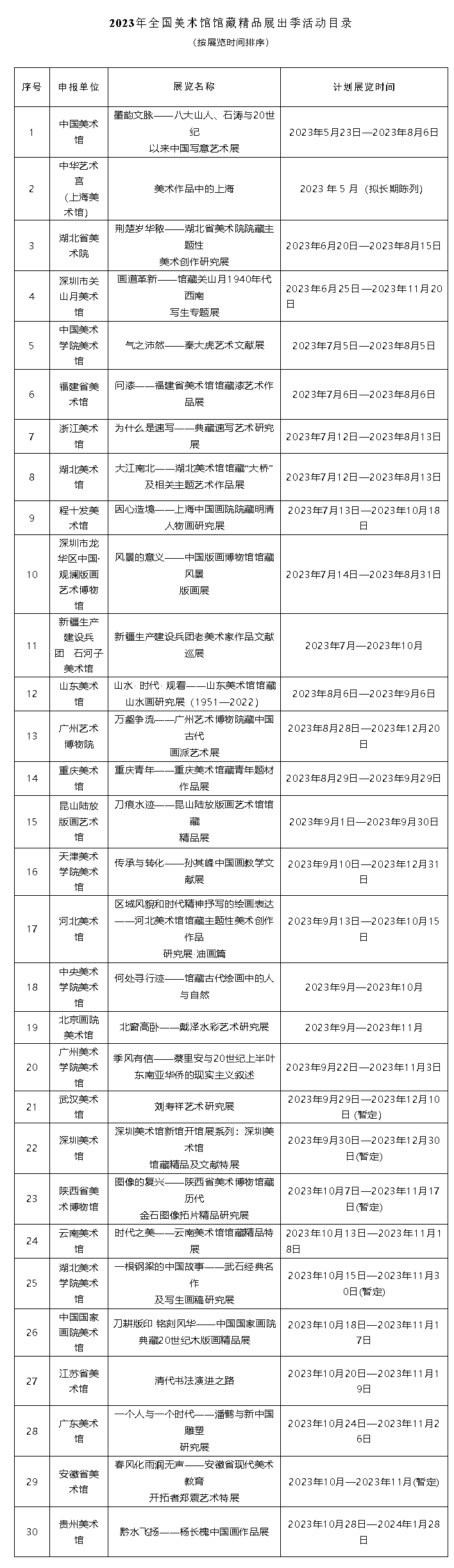 2023年全国美术馆馆藏精品展出季活动目录