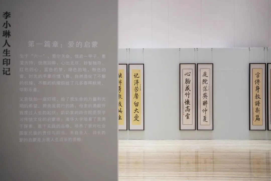 此次画展,共分《爱的启蒙》《爱的奉献》《爱的滋养》《爱的心愿》《爱的品格》五大主题,集中展出了李小琳的书法、绘画等百余幅作品。书法作品以18字楹联的形式,讲述一段人生故事,60副楹联,组成了人生一甲子的传记故事。