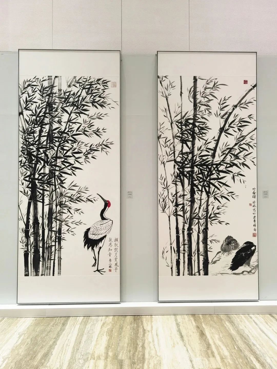 展厅中间,巨幅作品“九天君竹”,是她迄今创作的最大尺幅的竹林图,整幅作品近820平尺。画作气韵生动,形神兼备之余更具磅礴之势。