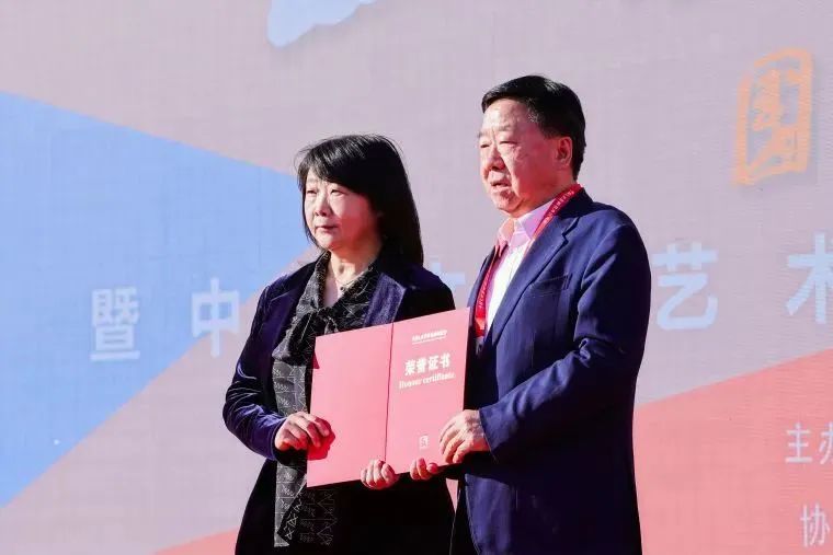 原文化部副部长赵少华、中国文促会主席杨晓阳向 已故人民艺术家刘文西,向雕塑家盛扬,西班牙画家、雕塑家加里西亚·里波列斯·胡安等发了中国文化艺术发展促进会创会30周年荣誉证书。