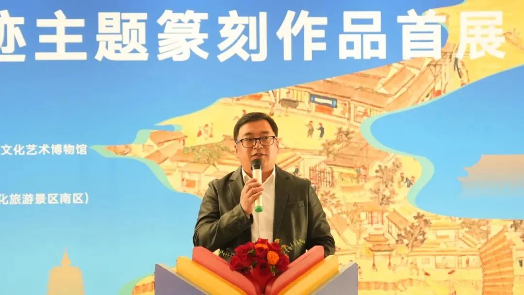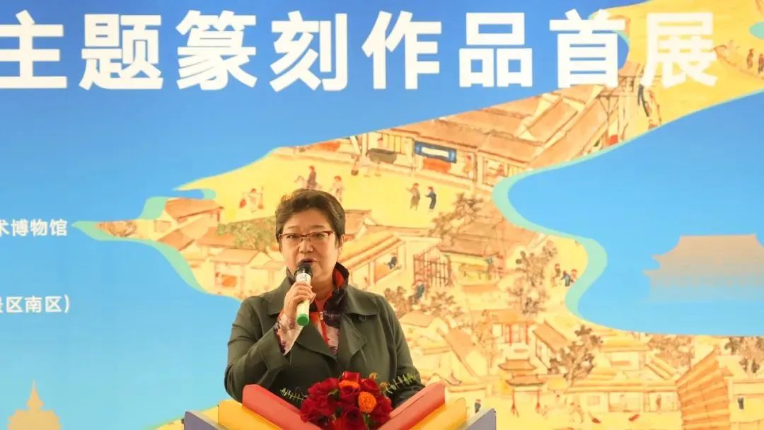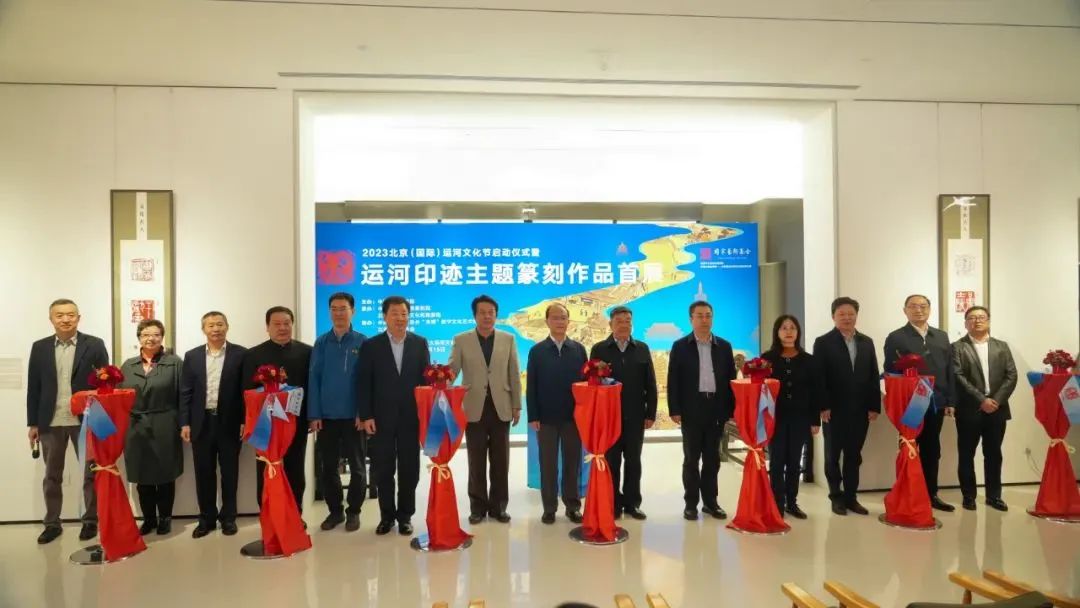 “运河印迹”主题篆刻作品首展在北京通州大运河文化旅游景区艺境空间美术馆举办。开幕式上,中共中央国务院原台办副主任周明伟,第十三届全国政协民族和宗教委员会副主任杨小波,中国艺术研究院党委副书记齐永刚,中国艺术研究院篆刻院名誉院长骆芃芃,通州区文化和旅游局局长张华,艺术家代表、北京书协副主席刘楣洪先后致辞发言,中国书法家协会主席孙晓云,中国工艺美术大师、国家非物质文化遗产铜雕技艺代表性传承人朱炳仁分别以视频的形式对本次展览的举办表示祝贺。