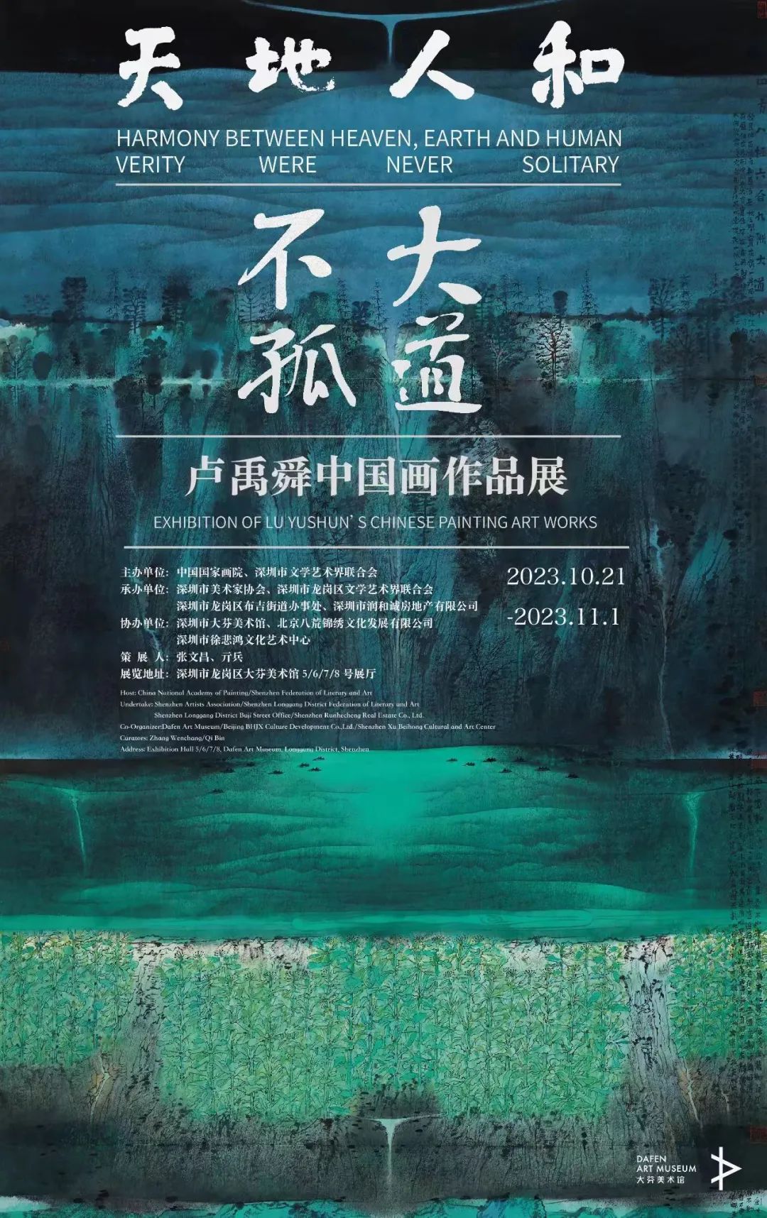 10月24日,由中国国家画院、深圳市文学艺术届联合会主办,深圳市美术家协会、深圳市龙岗区文学艺术届联合会、深圳市大芬美术馆、深圳市润和诚房地产有限公司共同承办的“天地人和·大道不孤——卢禹舜中国画作品展”在深圳大芬美术馆开幕。