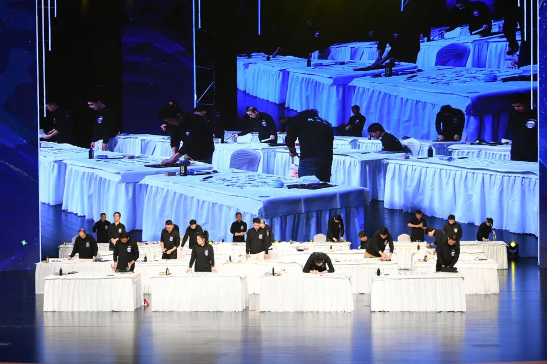 10月20日上午,半决赛率先鸣金开锣,选手们分为四组依次进行指定内容的魏碑书法独立创作,以古诗词为题创作四尺竖幅作品,每组创作时间为25分钟。本场半决赛所考察的内容不仅与选手日常的书法学习积累相关,也是对选手即兴创作水平的考验。近两个小时的激烈比拼后,四组选手均根据参赛规则顺利完成了创作。经过评委会严谨细致的打分及复核,方申奥、司正博、赵立群、万力等40位选手胜出,成功晋级决赛。