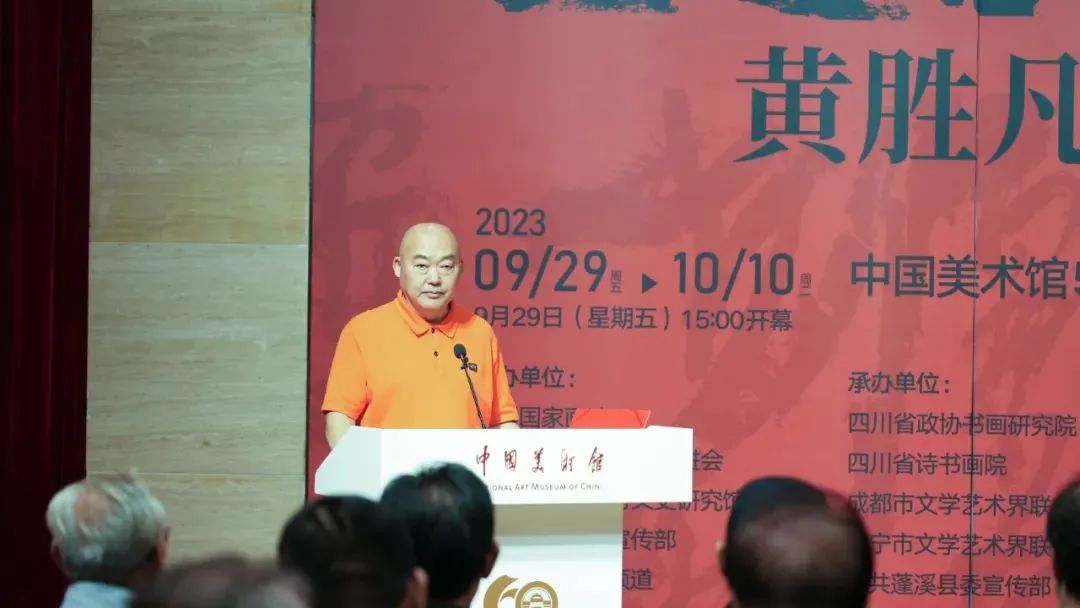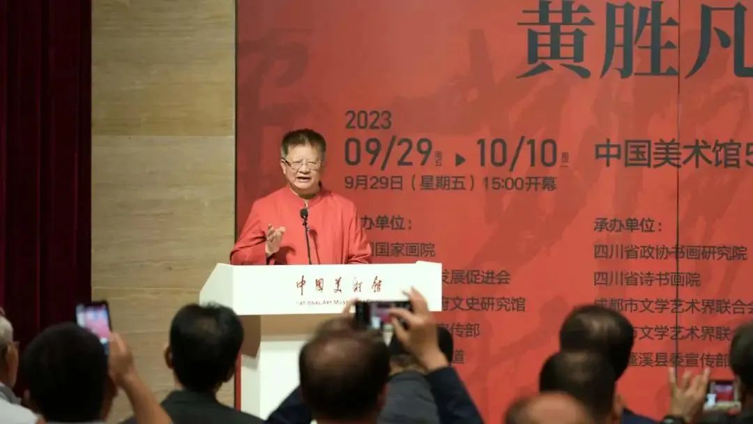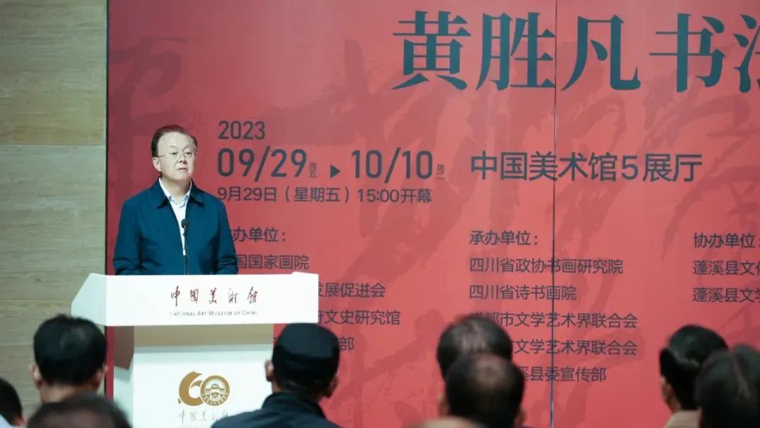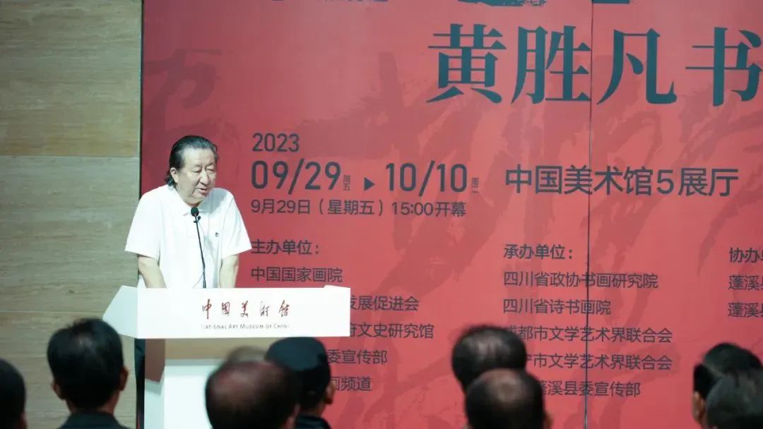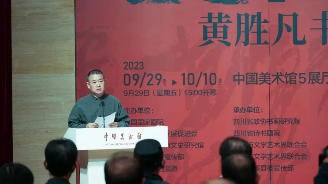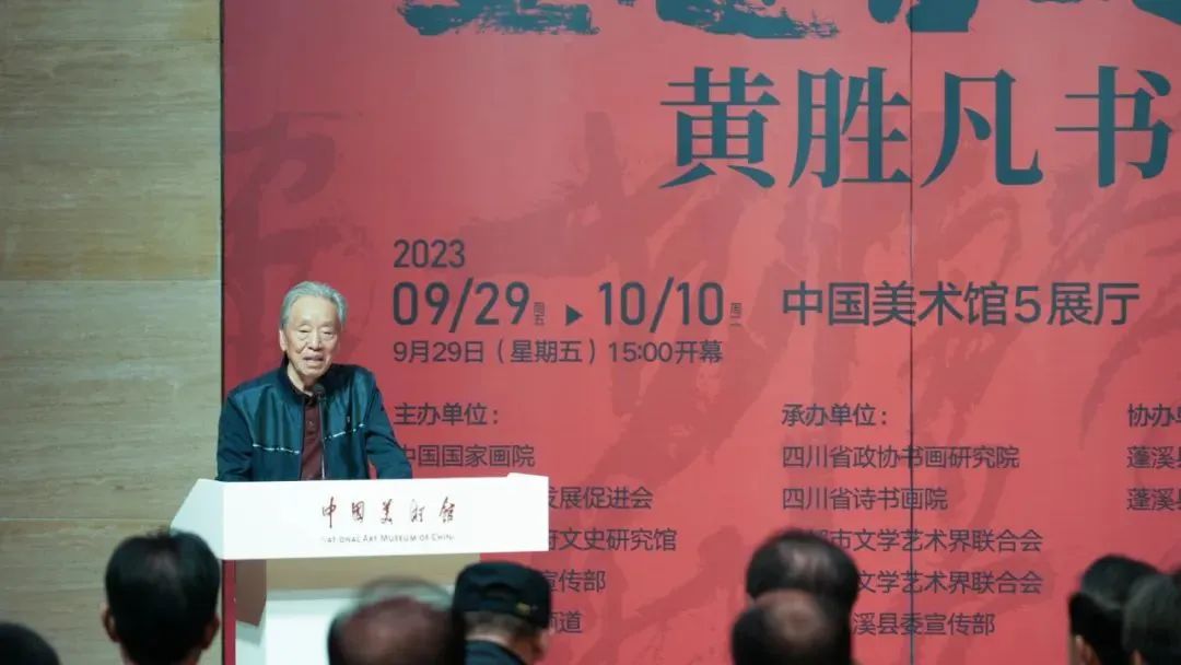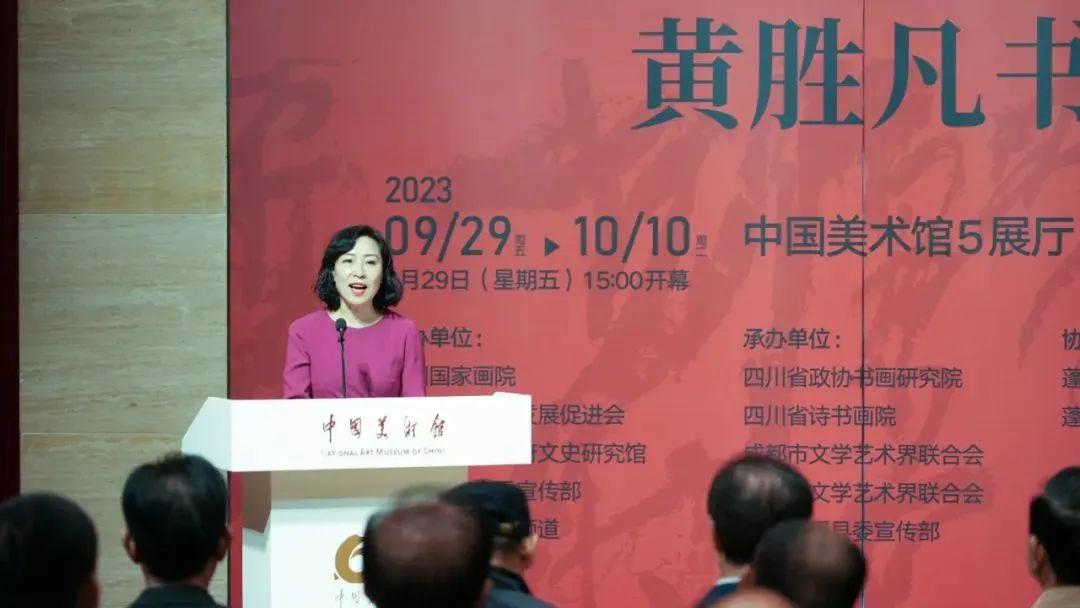 9月29日,由中国国家画院、中国文化艺术发展促进会、四川省人民政府文史研究馆、中共遂宁市委宣传部、数字电视书画频道共同主办的“画意书魂——黄胜凡书法展”在中国美术馆隆重开幕。来自文化艺术界专家学者、领导、嘉宾,以及四川省、成都市、遂宁市、蓬溪县的相关领导嘉宾,以及社会各界人士出席了展览开幕式。开幕式由中国国家画院书法篆刻所副所长洪厚甜主持。