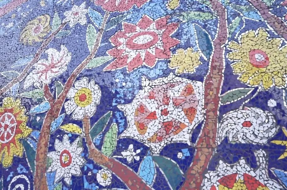 蒲公英中学是北京市第一所专门为农民工子女创办的公益学校,办学十八年以来,学校始终站在流动儿童教育这一历史性社会课题前沿,潜心探索服务困境儿童的义务教育并取得硕果。蒲公英西墙是蒲公英中学于2018年冬季迁入新校区后第一个重要的“学校即博物馆”大型项目,墙体中段的艺术装饰生命树由叶蕾蕾设计。在蒲公英中学全体师生和二百多名来自校外的志愿者共同完成下,近600块瓷块拼贴成了一副绚烂的生命树。