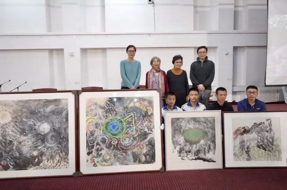 当日,蒲公英中学还邀请与叶蕾蕾、何韵兰、谢丽芳,展开了一场关于美育的座谈会。叶蕾蕾、何韵兰、谢丽芳三位老师在儿童公益美育领域深耕数十年,三人也在一路同行的道路中结下了深刻而绵久的友谊。在业内有着“三剑客”的美称,此次“美育三剑客”敞开心扉,与学生一起敞谈她们在美育领域的思考与感受,也会聊起彼此之间一路扶持互相支持的动人故事。在开幕式现场,何韵兰与叶蕾蕾分别向蒲公英学校捐献了两幅作品,每一件作品都承载着艺术家对学校的爱护与支持,其中何韵兰捐赠的一副为先生刘勃舒生前精品之作。