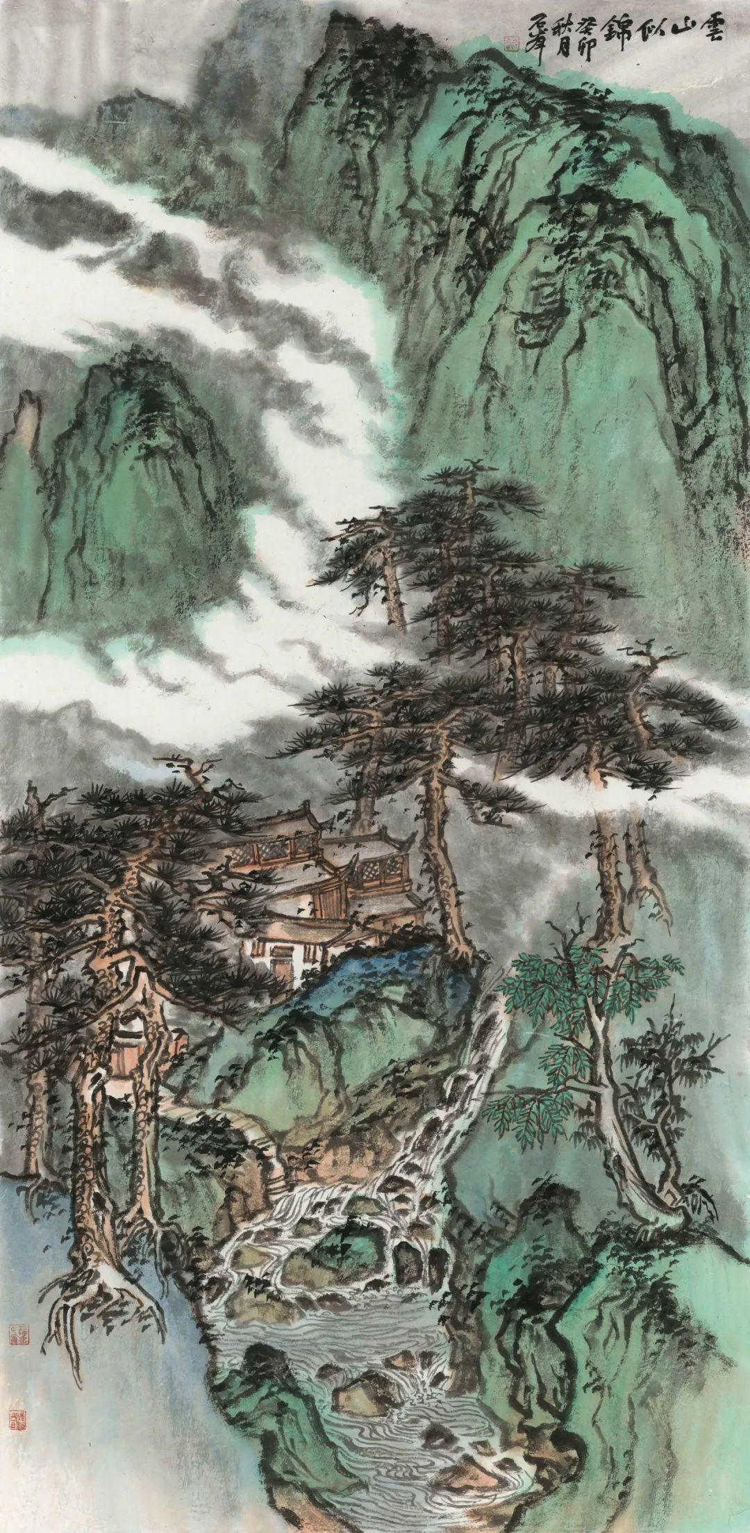 《云山似锦》 136×68cm 纸本青绿 2023年