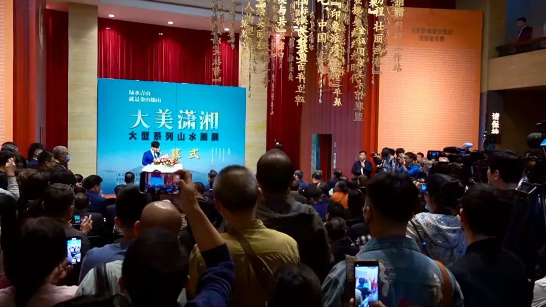 2018年,习近平总书记来到岳阳,叮嘱湖南“守护好一江碧水”。如今的湖南艺术家们以古为师,融汇古今中国画之精妙,以山水画作展示出当代潇湘的魅力。“绿水青山就是金山银山”大美潇湘大型系列山水画展在中国美术馆开幕,一幅幅新时代的潇湘图景再次呈现在人们眼前。王金石等几十位艺术家三年时间创作的作品,包括七幅山水画长卷和35幅单幅美术作品,不仅传承了潇湘山水的诗情画意,而且展现了当代中国的壮丽景象和人民的豪迈气概。