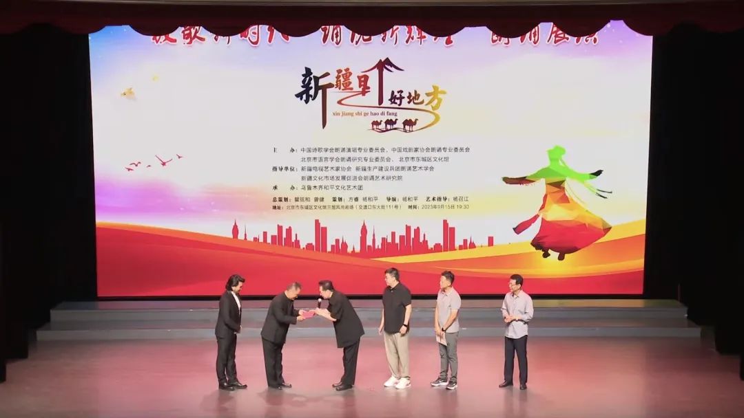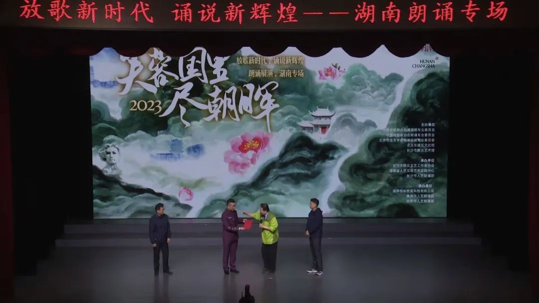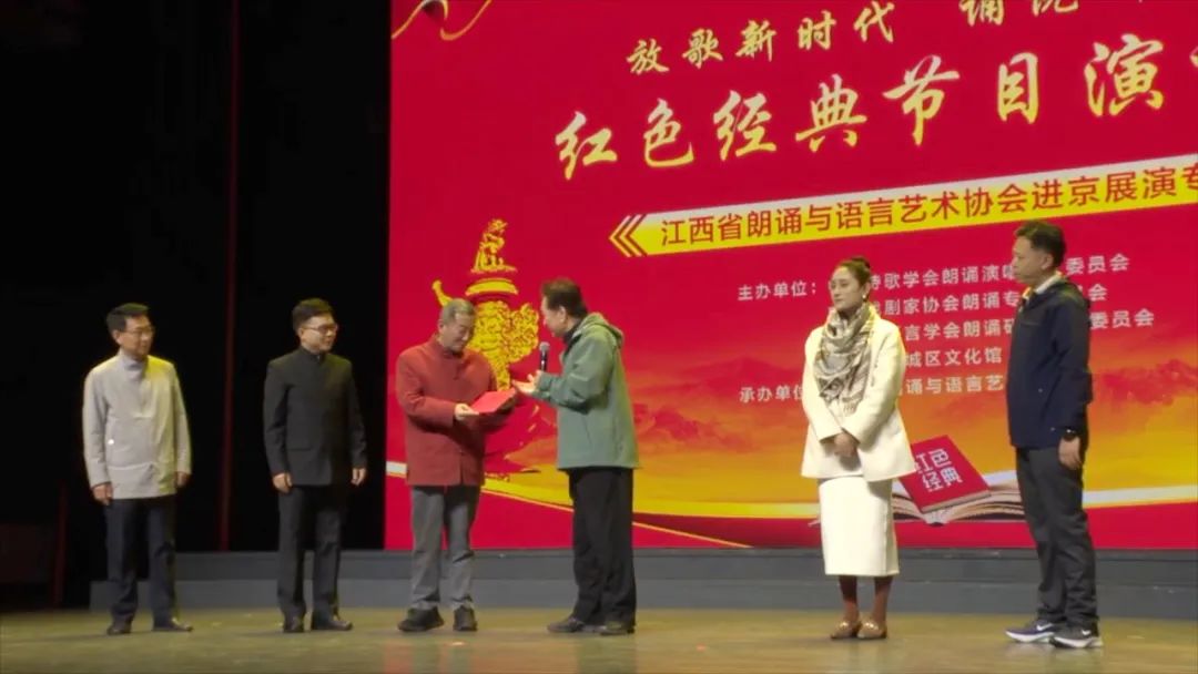 中国诗歌学会朗诵演唱专业委员会、中国戏剧家协会朗诵专业委员会、北京市语言学会朗诵研究专业委员会、北京市东城区文化馆等主办单位向來自宁夏、新疆、山东、安徽、吉林、湖北、湖南、江西的朗诵团队颁发了展演证书。