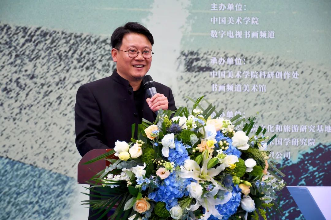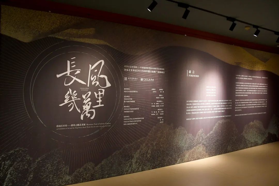 11月4日,由中国美术学院和数字电视书画频道主办,中国美术学院科研创作处、书画频道美术馆承办,国家艺术基金管理中心指导,中国美术学院艺术国学研究院、敦煌文旅集团有限公司共同协办的国家艺术基金2023年度传播交流推广资助项目:第四届青山行不尽——唐诗之路艺术展:长风几万里,在书画频道美术馆隆重开幕。