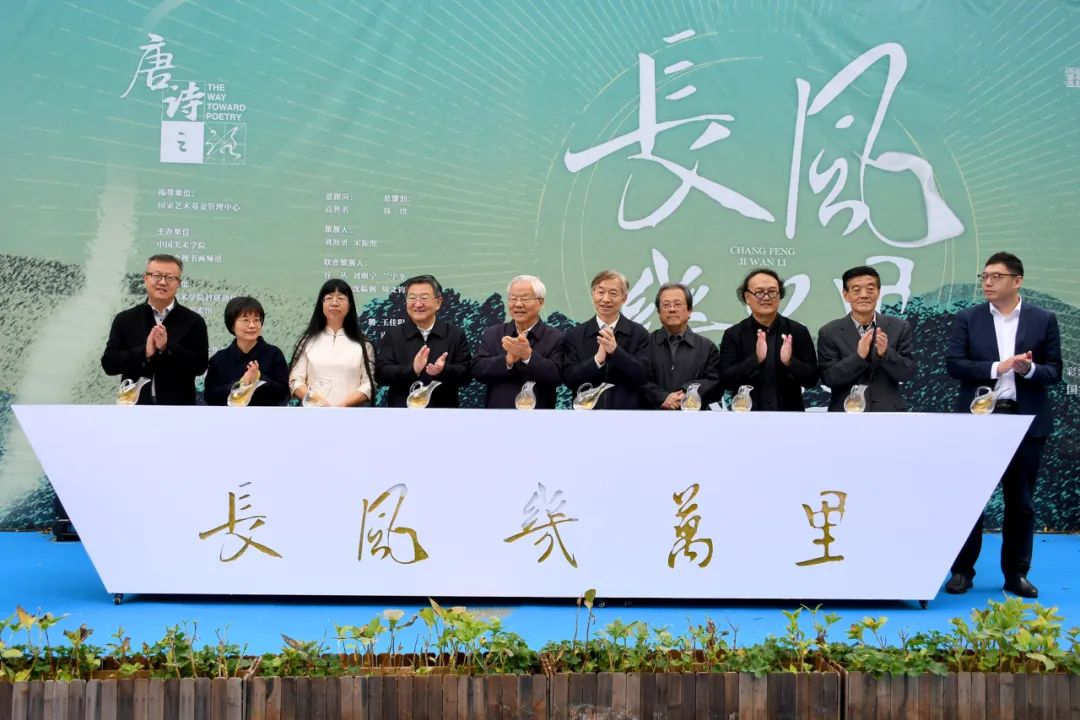 蔡武、黄树贤、吴玉良、冯远、王鹤云、高世名、孙晓强、李培元、刘冬妍、傅瀚霄共同为“青山行不尽 ——唐诗之路艺术展:长风几万里”启幕。