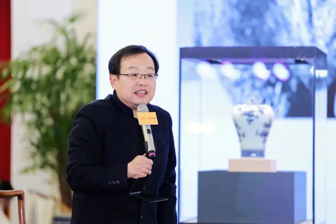 中国国家博物首席鉴定师耿东升在现场为大家鉴赏了馆藏文物明代霁蓝梅瓶,清乾隆青花三果梅瓶这两件珍贵藏品